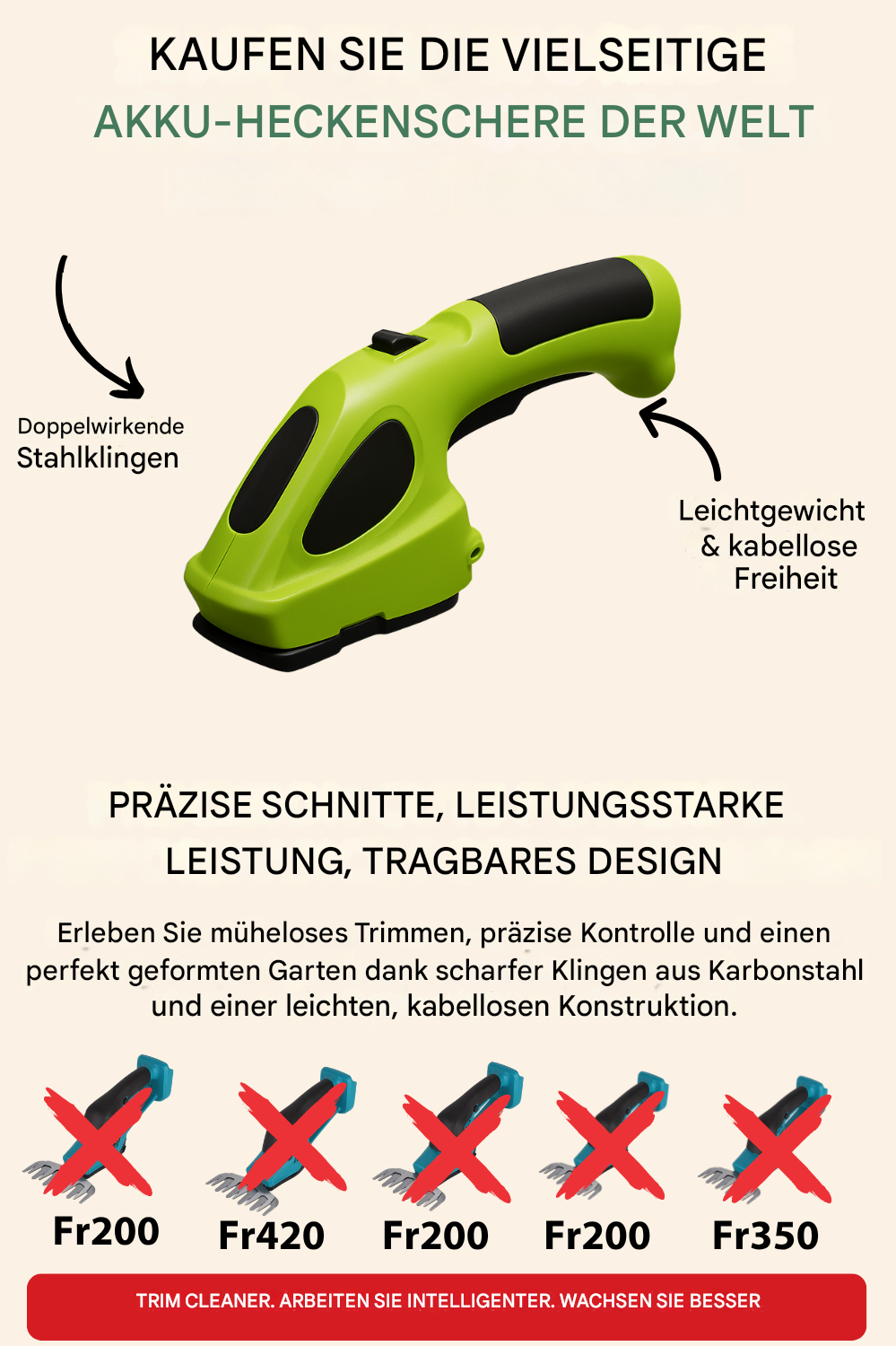 Der ergonomische Griff und das leichte, kabellose Design machen jedes Trimmen reibungslos und mühelos und geben Ihnen die volle Kontrolle ohne die Anstrengung oder das Gewicht schwerer Werkzeuge.