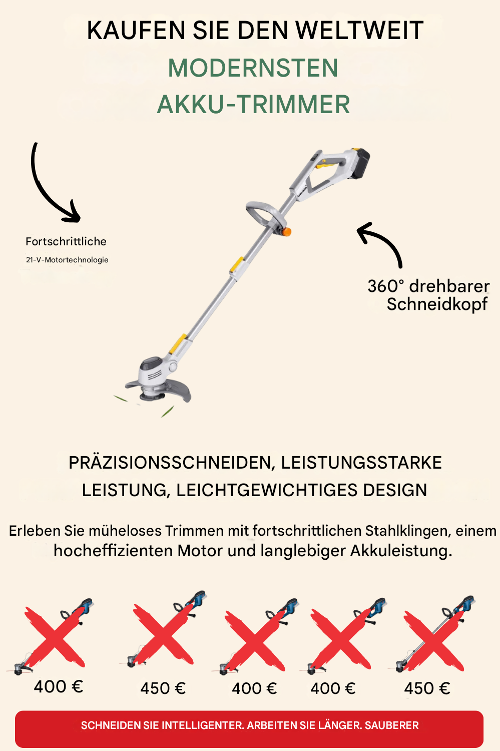 Das Design mit rotierendem Kopf ermöglicht Ihnen das mühelose Trimmen entlang von Rändern, Zäunen und engen Stellen – und verleiht Ihrem Rasen aus jedem Winkel ein sauberes, professionelles Finish.