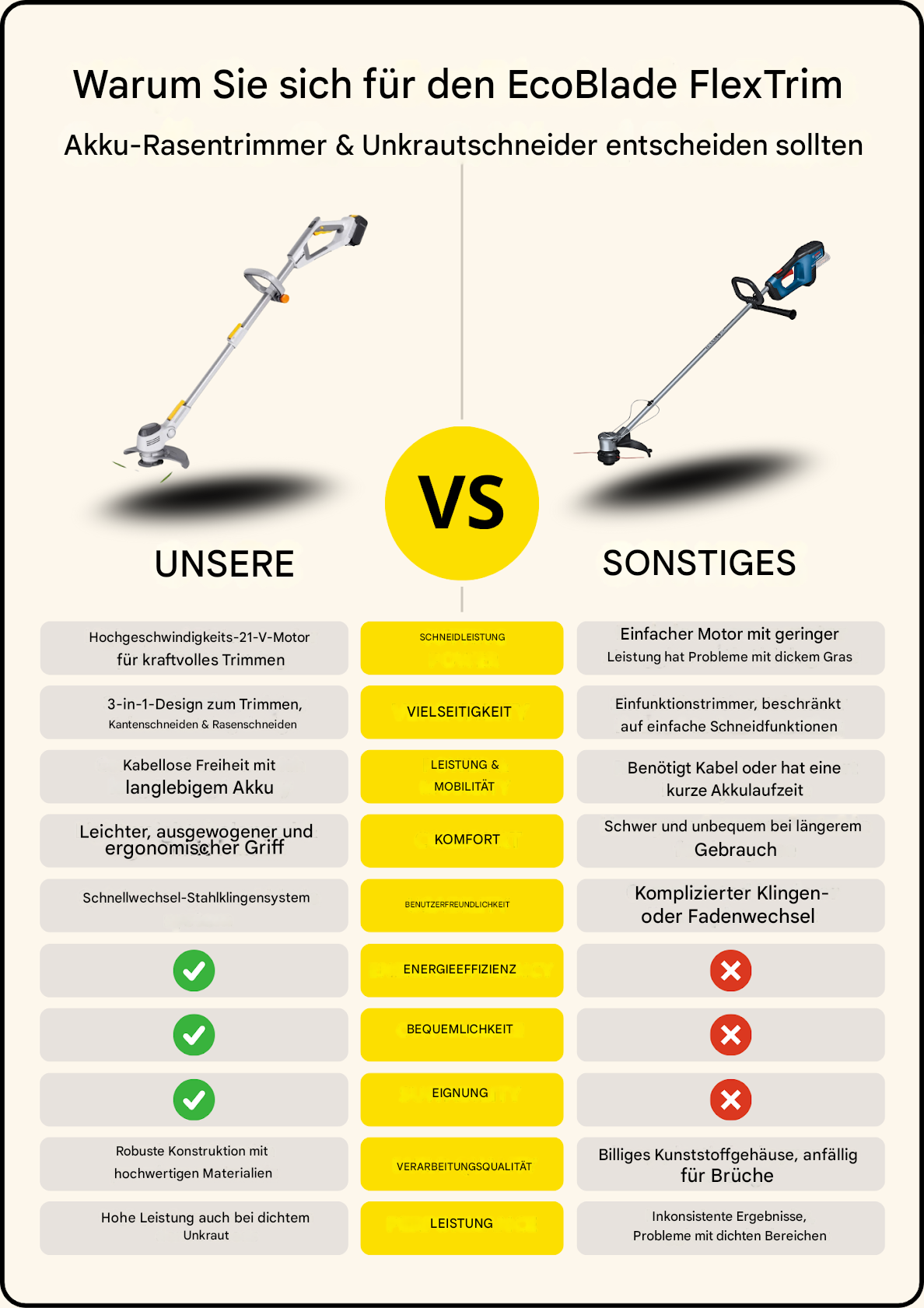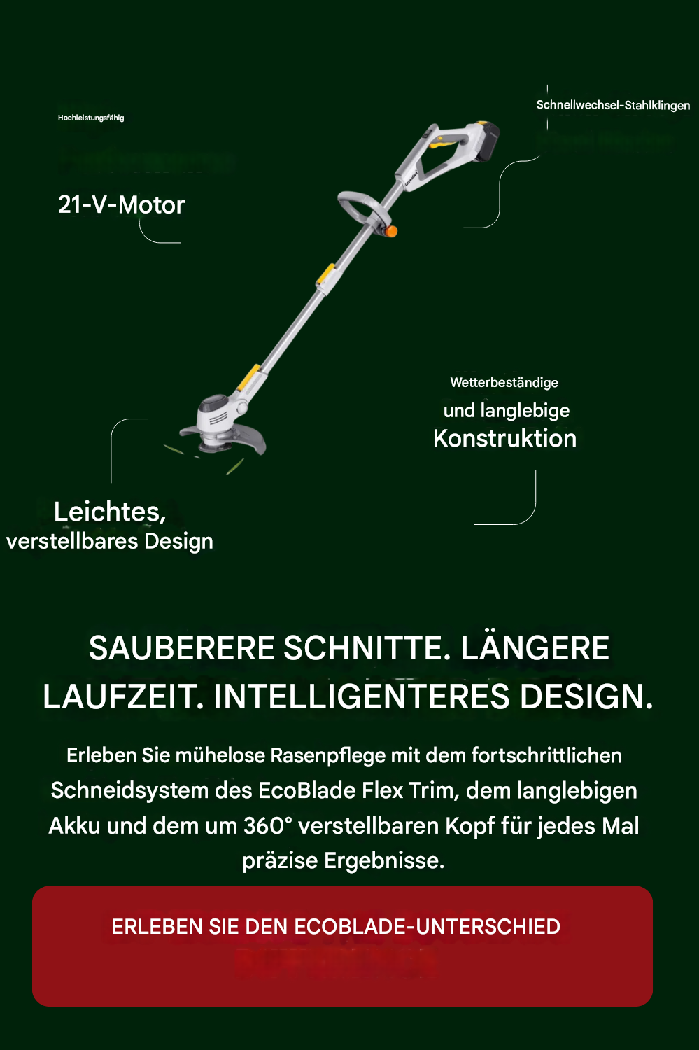 Der EcoBlade FlexTrim liefert bei jedem Einsatz schnelle, konstante Leistung und schneidet mühelos durch dichtes Gras und Unkraut – und das bei gleichzeitig reibungsloser Steuerung und leisem Betrieb.