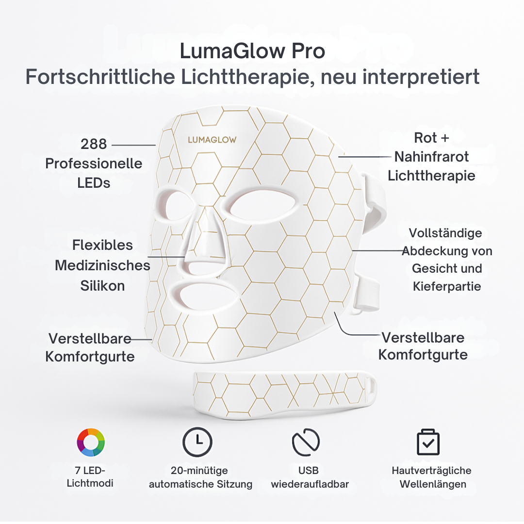 Eine gute LED-Maske ist ein fester Bestandteil Ihrer Hautpflegeroutine für optimale Ergebnisse und Hautgesundheit. LumaGlow bietet sowohl Infrarot als auch tiefes Infrarot und bietet Ihnen maximale Vorteile!
