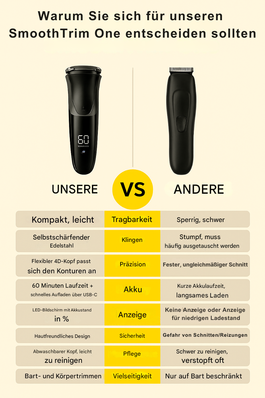 Rasieren Sie sich intelligenter mit einem leistungsstarken, wasserdichten und benutzerfreundlichen Rasierer für den täglichen Gebrauch.