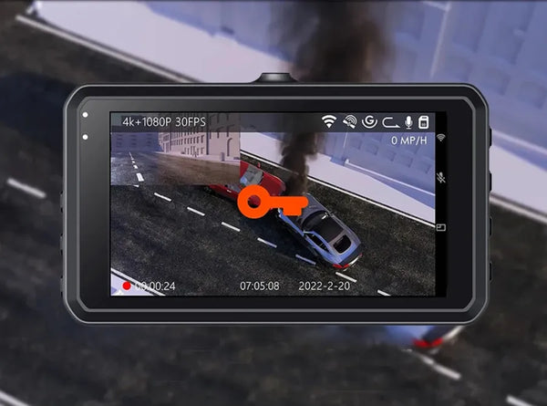 Die Dashcam mit integriertem G-Sensor wird bei einem Aufprall aktiviert und zeichnet präzise Notfalldaten auf, die Aufprallzeit und -ort angeben und die Datei für eine spätere Untersuchung speichern.